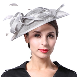 June’s Young Damen Damenhut Brauthut Kopfschmuck Mit Feder Haarschmuck Für Hochzeit Anlasshut Kopfbedeckung (Grau)