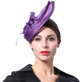 June’s Young Damen Fascinator Brauthut Haarschmuck Mit Feder Kopfschmuck Kopfbedeckung Für Hochzeit Karneval Anlasshut Hochzeitshut (Violett)