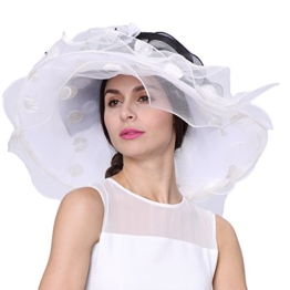 June’Young Damen-Huete Sommerhut aus Organza Festlicher Hut Sonnenhut mit Schmuck fuer Hochzeit Kirche Breite Krempe